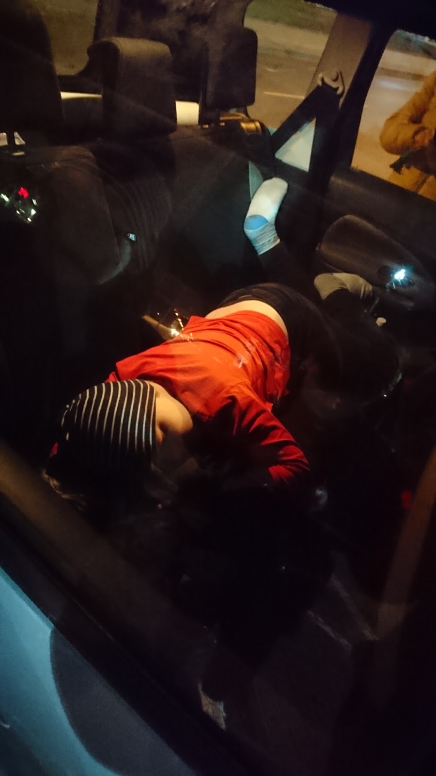A moi chłopcy siedzieli w samochodzie i słuchali….  z racji pory, a może skupienia, sen zmorzył najmłodszego mężczyznę.