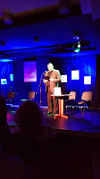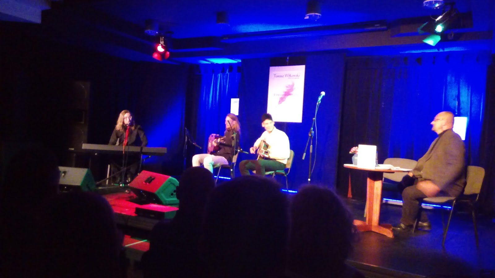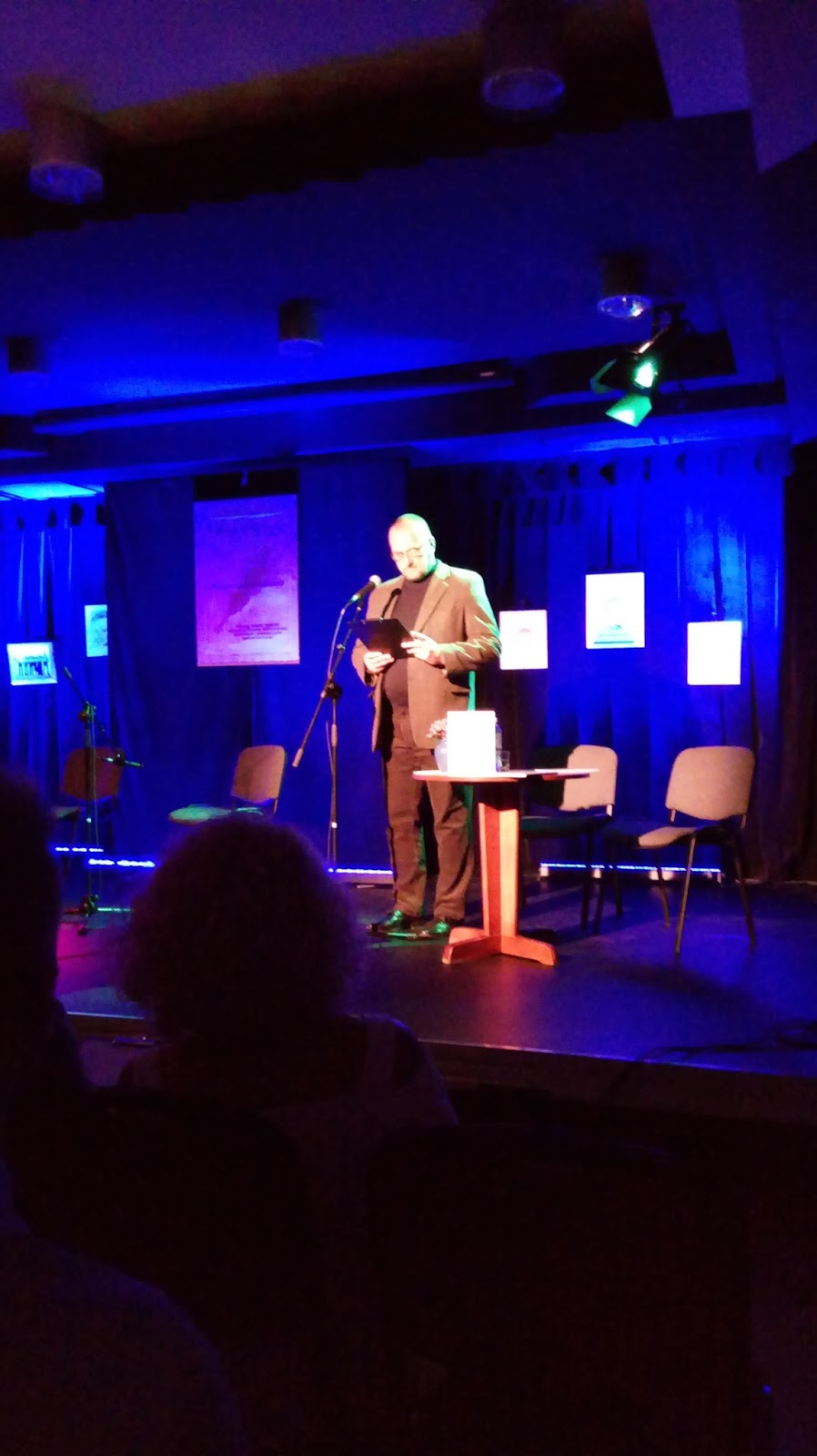 Kilku znajomych Gospodarza przeczytało wybrane utwory, a wśród nich znalazłam się również ja. To fantastyczne wrażenie. Światło padające na scenę, zupełnie przesłoniło wpatrzonych w nas widzów, co pomogło w wyeliminowaniu stresu. Bawiłam się doskonale.